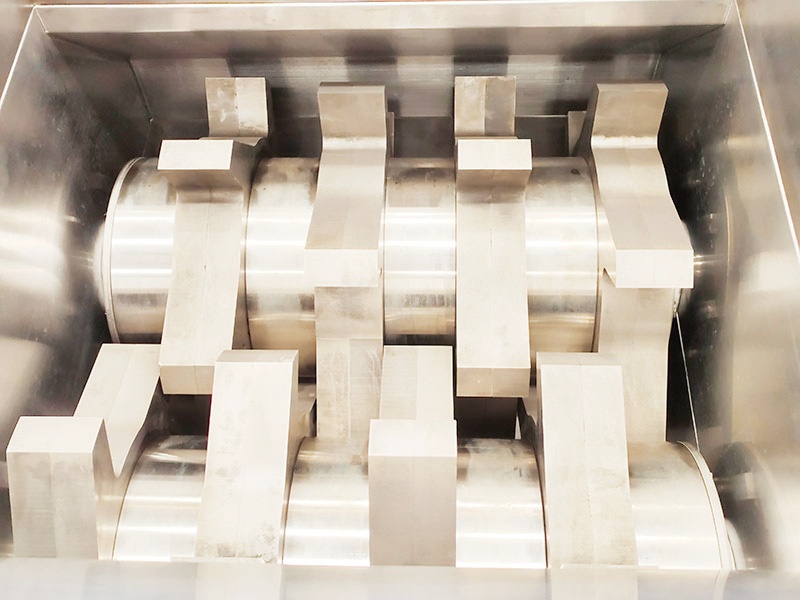 工作過程或原理:主要含有兩根輥:金屬輥和廢金屬輥。減速電機帶動非金屬輥轉動,在兩輥的另一端設有一對同步齒輪,通過齒輪嚙合使得兩輥相對轉動,兩輥的截面形狀一般為五角星形。物料進入兩輥之間,通過兩輥的嚙合完成擠壓破碎功能。